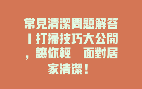 常見清潔问题解答|打掃技巧大公開,讓你輕鬆面對居家清潔!