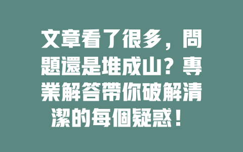 文章看了很多,問題還是堆成山?專業解答帶你破解清潔的每個疑惑!