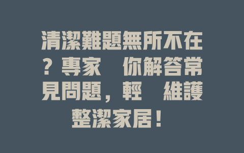 清潔難題無所不在?專家為你解答常見問題,輕鬆維護整潔家居!