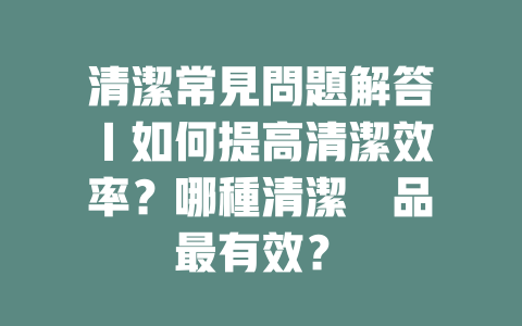 清潔常見問題解答|如何提高清潔效率?哪種清潔產品最有效?