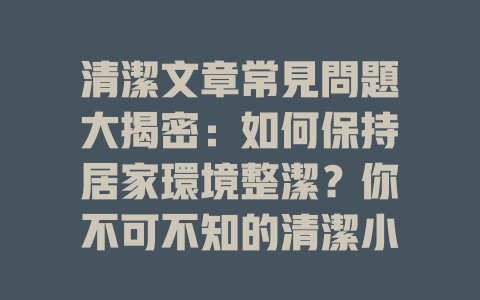 其實,清潔不一定要花大量時間和金錢。以下是一些簡單易行的清潔小技巧,幫助你在日常生活中輕鬆維持清潔: