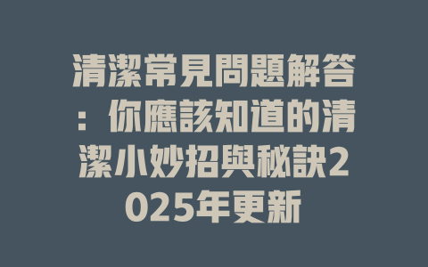 我們的生活環境隨時都可能受到污染與雜亂的影響,清潔工作不僅對於個人健康至關重要,更直接影響到家庭和社區的整體福祉。其實清潔的範圍非常廣泛,無論是家裡的環境、辦公場所,或是公共場域,每一個地方都需要定期的清洗和整理。良好的清潔習慣能夠讓我們生活在一個更健康、更美麗的空間中。