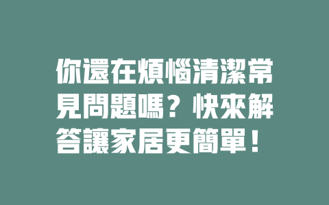 通過這些基本的清潔步驟和注意事項,家庭的清潔工作會變得輕鬆許多。保持環境整潔,讓生活空間更加舒適自在。