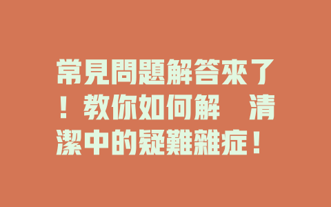 不僅如此,我們還會涵蓋一些小撇步,讓你在清潔時能事半功倍,無論是居家清潔還是處理突發事件,都能輕鬆應對。不再讓不明的污漬和異味煩擾你,跟隨本文章的指引,一起重新掌控清潔的主動權。無論你是清潔新手還是有經驗的老手,這裡都有你需要的知識和技巧,讓你輕鬆面對清潔中的難題,讓環境回歸乾淨與舒適。