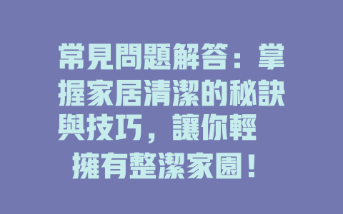 常見問題解答:掌握家居清潔的秘訣與技巧,讓你輕鬆擁有整潔家園!