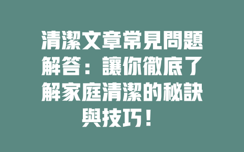 有哪些清潔的小技巧可以幫助我?