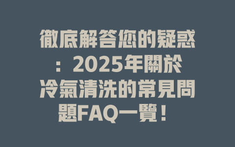 徹底解答您的疑惑:2025年關於冷氣清洗的常見問題FAQ一覽!