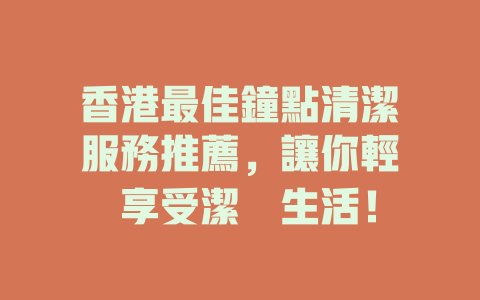 以下是一些香港的鐘點清潔服務公司,供你參考: