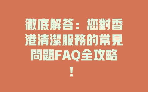 自動引用通知: 常見問題解答:關於2025年鐘點清潔服務的所有疑惑與解答 - SHANE CLEANING SERVICE COMPANY LIMITED