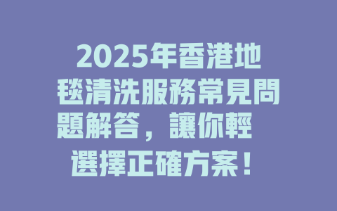 2025年香港地毯清洗服務常見問題解答,讓你輕鬆選擇正確方案!