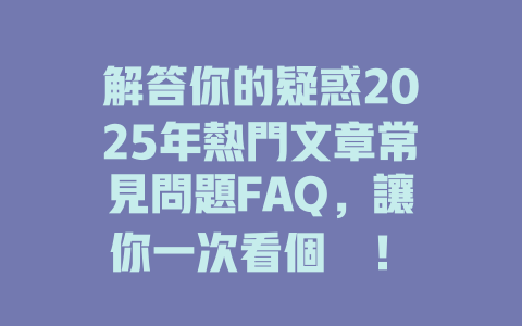 自動引用通知: 2025年最常見的文章FAQ,快來解答你對內容的疑問! - SHANE CLEANING SERVICE COMPANY LIMITED