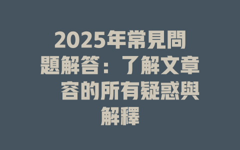 自動引用通知: 文章常見問題大揭密!2025年最新資訊與解答一次看! - SHANE CLEANING SERVICE COMPANY LIMITED