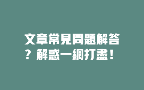 常見問題解答 (FAQ)