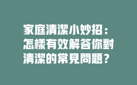 家庭清潔小妙招:怎樣有效解答你對清潔的常見問題?