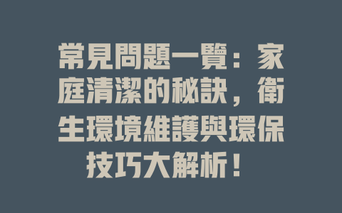 常見問題一覽:家庭清潔的秘訣,衛生環境維護與環保技巧大解析!