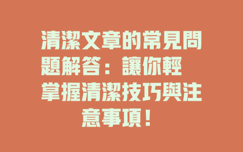 有意識地避免這些誤區,只會讓清潔工作更加得心應手。希望這些建議能幫助你把生活空間變得更整潔,也讓你在清潔的過程中感受到愉悅。