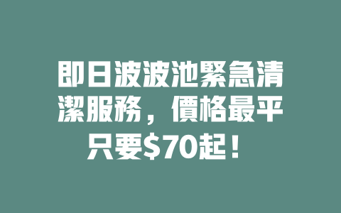 波波池是一個受歡迎的休閒場所,但隨著使用頻率的增加,池水的清潔與維護變得尤為重要。如果發現水面上漂浮著垃圾,或水質變得混濁,這時候即日波波池緊急清潔服務就能派上用場了。這項服務專門針對突發的清潔需求,讓您無需等待,隨時都能享受清澈的水質。