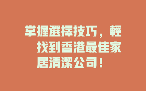 掌握選擇技巧,輕鬆找到香港最佳家居清潔公司!