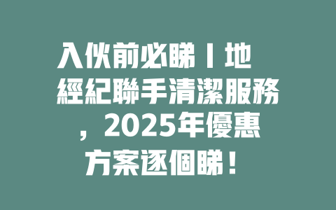文章將深入探討不同地產經紀如何與清潔公司攜手合作,提供多樣化的選項,以滿足不同客戶的需求。無論是基本的入伙清潔,還是深入的深度清潔服務,我們都有精選推薦,讓你不再為清潔而煩惱。 我們還會分享如何輕鬆找到適合自己的清潔方案,讓你的新居在入伙的第一天就能呈現最佳狀態。