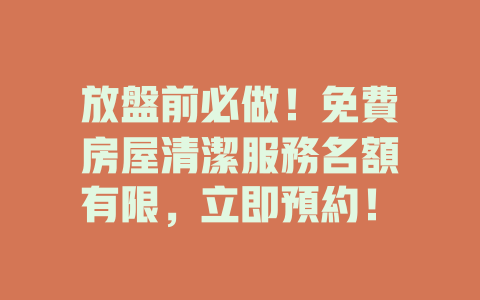 在選擇清潔服務時,瞭解他們的服務項目及價格,能幫助您更好地準備放盤工作。選擇合適的清潔方案,讓您的房屋在市場上更具優勢,吸引更多潛在買家。## 常見問題 (FAQ)