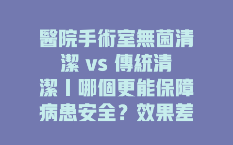 我們將揭示醫院手術室無菌清潔公司如何利用科學的清潔標準和先進的技術,創造一個安全無菌的手術環境,降低感染風險。而傳統清潔的方式或許在某些情況下足夠,但在高風險的醫療環境中,它是否能夠提供同樣的保障呢?透過這篇文章,你將更清晰地理解每種清潔方法的優缺點,以便在需要時做出明智的選擇。無論你是醫療工作者、病患家屬,還是對醫療環境有興趣的讀者,都能在這裡找到有價值的資訊,幫助你更好地了解保障病患安全的重要性。