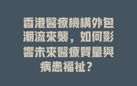 透過專家訪談與數據分析,本文將揭示外包對醫療服務的具體影響,並探討未來醫療體系需如何調整以應對這一變化。 外包是否能夠促進創新,提高醫療服務的可及性,還是會造成醫療資源的不平衡分配?這些問題值得我們深入思考。最終,我們希望本文能引發讀者對香港醫療體系未來發展的關注與討論,讓每一位病患都能在變革中獲得更好的醫療關懷。