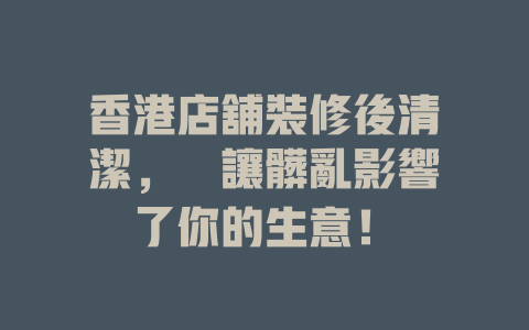 店舖裝修是提升品牌形象的重要一步, 裝修完成後,若不做好清潔工作,將會讓辛苦經歷的改變化為泡影。許多店主常常忽視這個環節,結果導致顧客對店舖印象大打折扣。髒亂的環境會讓人產生質疑,進而影響銷售。清潔是一門藝術,以下是幾個關鍵點,讓你在裝修後能夠保持店舖的整潔。