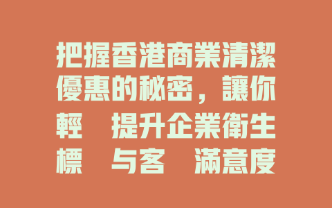 把握香港商業清潔優惠的秘密,讓你輕鬆提升企業衛生標準与客戶滿意度