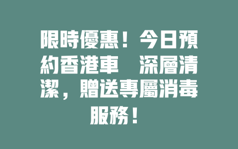 限時優惠!今日預約香港車廂深層清潔,贈送專屬消毒服務!
