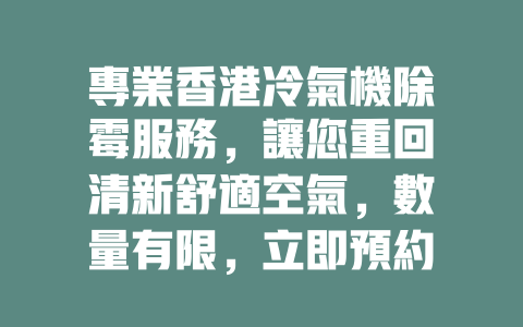 這些費用僅供參考,實際價格還需根據具體情況而定。了解這些信息後,您可以更明智地選擇適合的冷氣機除霉服務,為自己和家人創造更加健康的居住環境。