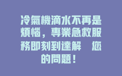 冷氣機滴水不再是煩惱,專業急救服務即刻到達解決您的問題!