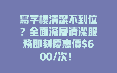 | 日常清洁 | 每周 | $300 | 适合小型办公室 |