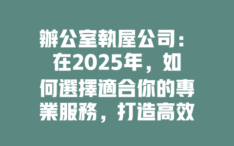辦公室的整潔與舒適不僅影響員工的工作效率,也能提升公司形象。這就是為什麼選擇一個適合的辦公室執屋公司如此重要。面對眾多選擇,我們可以從幾個關鍵要素入手,幫助你做出明智的選擇。