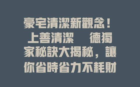 清潔豪宅絕對比清潔一般居所要繁瑣得多,尤其是面對大面積和多樣化的材質。 了解一些新的清潔觀念和技巧,可以讓我們在保持家中潔淨的同時,也能省時省力。