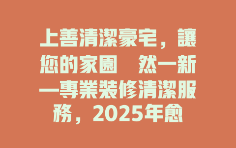 上善清潔豪宅,讓您的家園煥然一新—專業裝修清潔服務,2025年愈加出色!