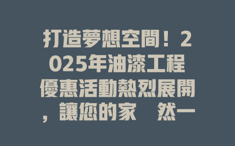 打造夢想空間!2025年油漆工程優惠活動熱烈展開,讓您的家煥然一新!