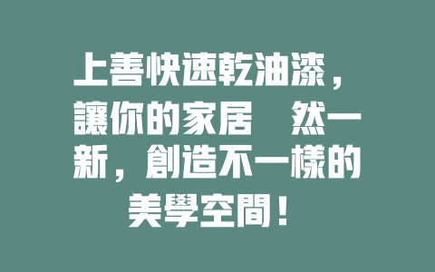 上善快速乾油漆,讓你的家居煥然一新,創造不一樣的美學空間!