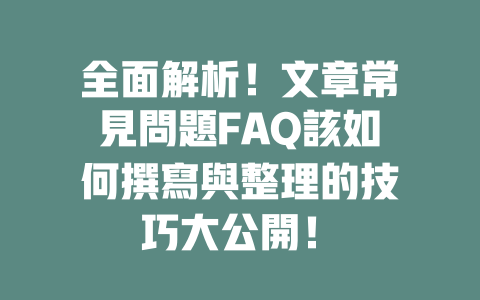 全面解析!文章常見問題FAQ該如何撰寫與整理的技巧大公開!