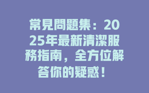 常見問題集:2025年最新清潔服務指南,全方位解答你的疑惑!