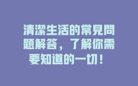 維持清潔的生活環境對於每個人來說都非常重要。它不僅影響居住的舒適度,還對身體健康有著直接的影響。特別在當今快速發展的社會,生活節奏加快,清潔的習慣變得尤為重要。以下我們來聊聊清潔生活的多個方面。